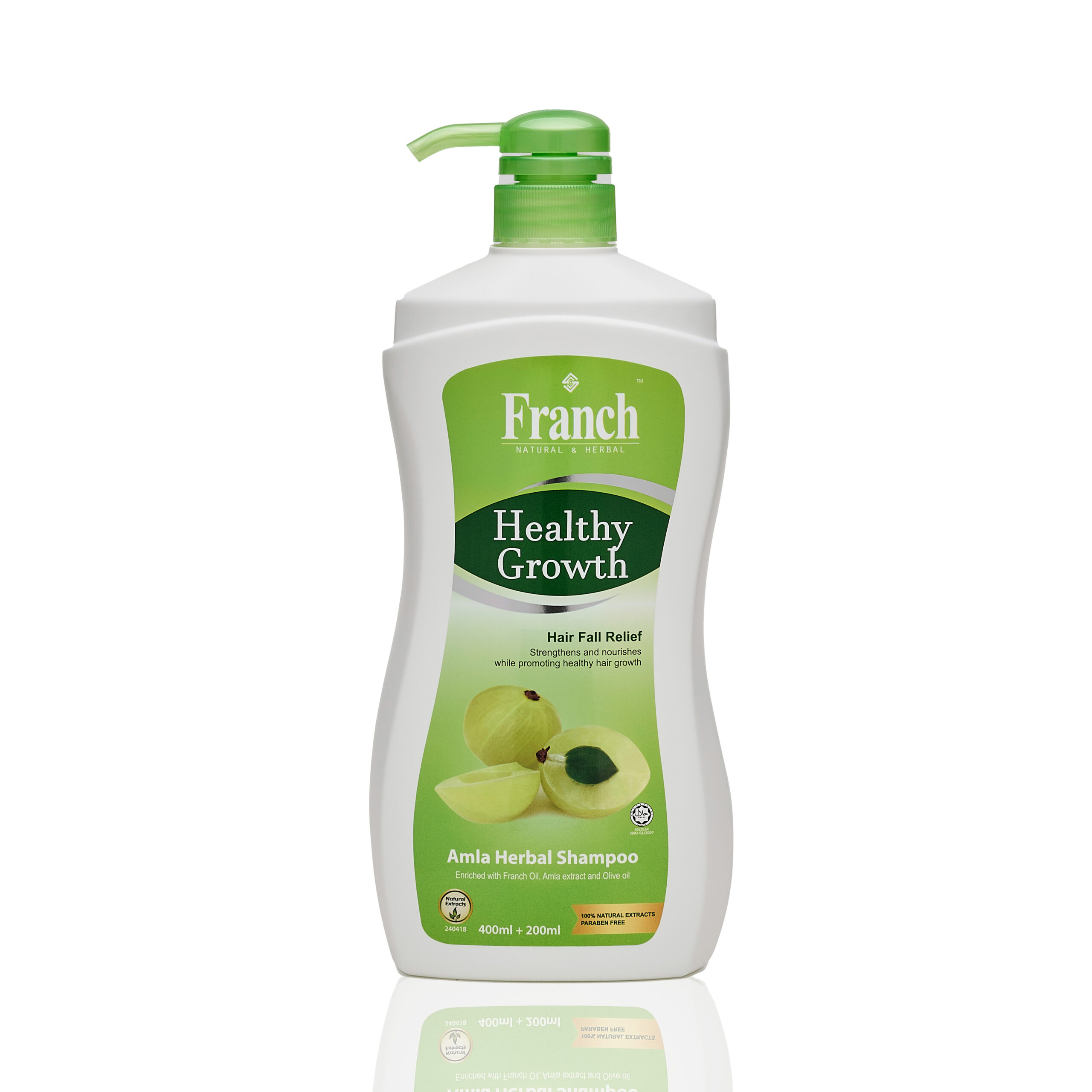 Healthy Growth Amla Shampoo enriched with Franch Oil, Amla extract and Olive Oil is a triple action formula that controls hair fall, hair greying and treats damaged hair by strengthening hair shafts to prevent hair loss, promote healthy scalp to stimulate hair growth. lt is recommended for those suffering from hair loss, greying, dry or damaged hair and is safe for colour-treated hair.
